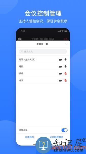 2、主持人会管会控:主持人一键全体静音、移除参会者、锁定会议等,极力保证会议秩序