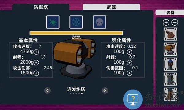 --一站式购买不同种类的炮塔,每种炮塔都有自己的特殊能力。比较统计数据并优先购买哪些炮塔。