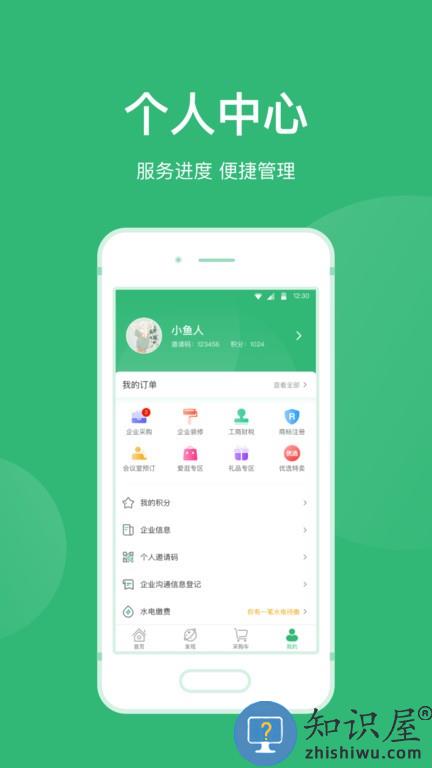 在我的页面,查看我的订单、我的积分、企业信息、个人邀请码等