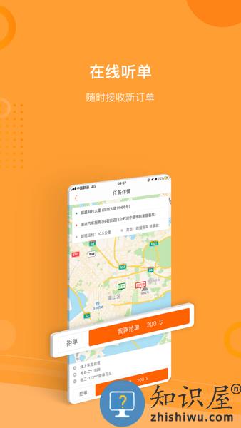 面向车辆救援拖车、车辆事故查勘定损、人伤查勘探视等服务人员的手机应用。通过加盟并使用本软件,服务人员可以接收到附近的订单并按照规定执行完成后获得对应的服务费。
