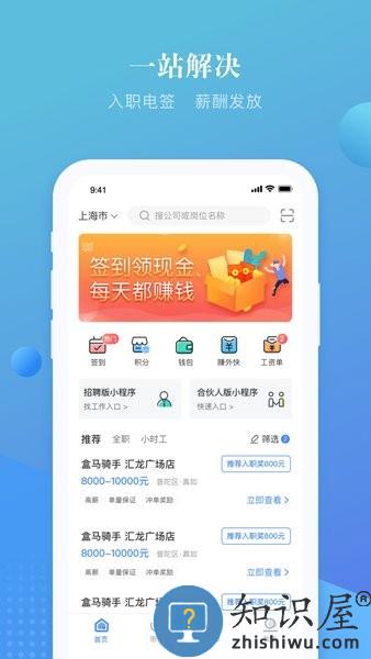 上嘉好饭碗是旨在为企业和员工提供一站式工作的服务软件,好饭碗APP是一个集招骋、面试、入职、薪酬、员工成长计划、福利、保险、法律援助的闭环式平台。