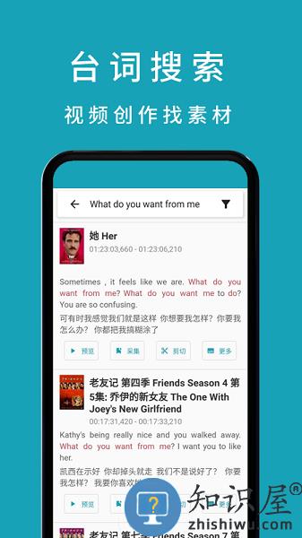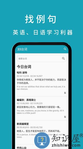 通过33台词app,你可以轻松找到相关台词出现的影片和时间点。如果你是视频创作者,可以用它来寻找素材。如果你是英语老师,你可以用它来找到相关句子和词汇的使用场景。