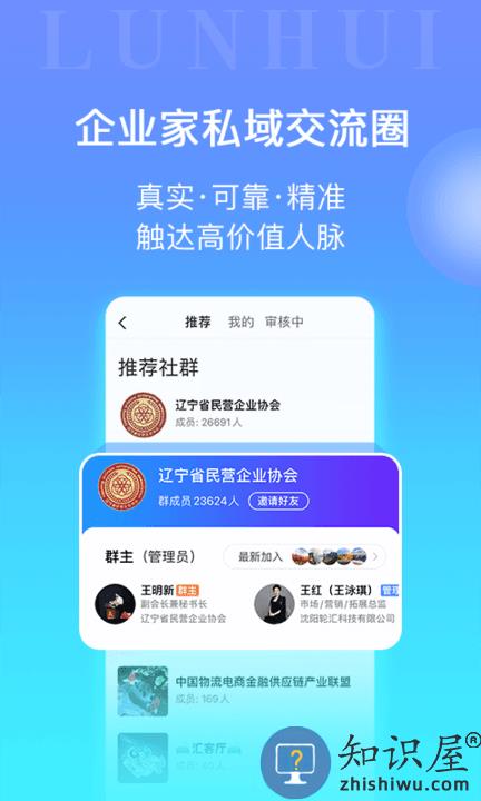 轮汇社群平台是一款非常实用的办公社交软件,用户可以通过该软件快速达到宣传自己公司的效果,并发布各种权威型的资讯内容,拓展自身的客户和人脉.感兴趣的朋友可以来2265安卓网下载.