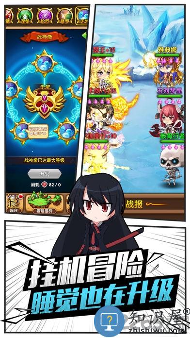 让玩家在休闲挂机获得各种资源的条件下收集养成英雄卡牌,升级和强化自己的卡牌角色,玩家通过获取不同的英雄,自由搭配成不同战术组合。在玩家竞技BOSS挑战时,丰富的战术组合,玩家可以通过收集强力英雄组成更强力的卡组,也可以通过强化进阶现有的英雄提升实力。