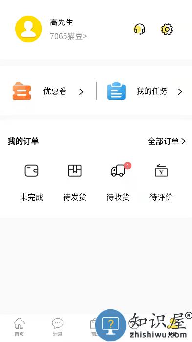 我的页面上有待付款,待发货,待收货,已完成,优惠券,我的任务。