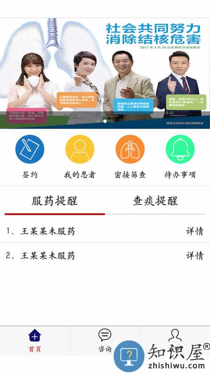 本产品主要用于肺结核患者管理,包括患者治疗过程中相关节点提醒、不良反应监测、心理测评等。