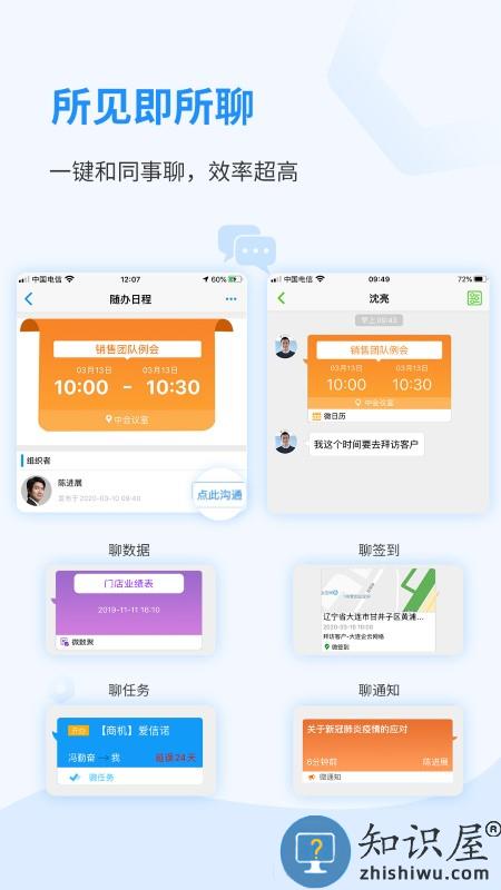 2.围绕任务,随办开发了13大功能模块,如微任务、微会议、微签到、微申请等,来满足不同场合情景下任务推进的需求。