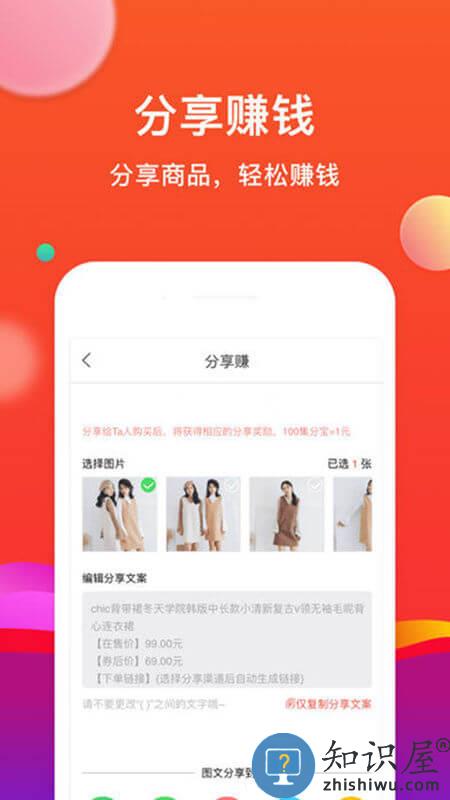 2、分享app给好友,邀请好友,他们省钱购物,你挣钱。无需天天发圈,佣金快速到账。