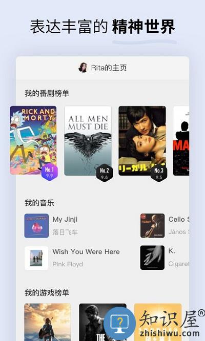 3.生成你的专属榜单,为喜欢的影音书籍进行打分,交流游戏番剧寻找知己;