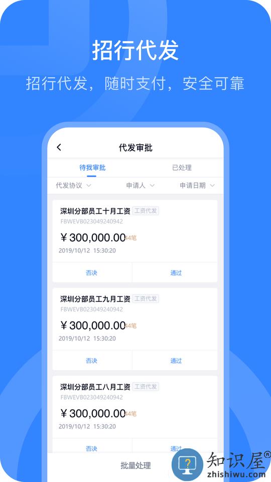 【代发服务】提供代发申请、代发审批、代发付款功能,随时随地完成代发流程,发薪更便捷、更高效
