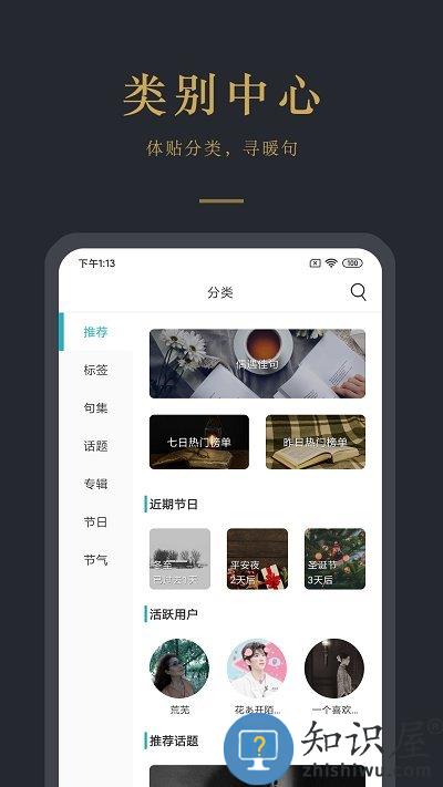 「分类」- 根据节日、节气、标签、句集、专题、话题进行分类;
