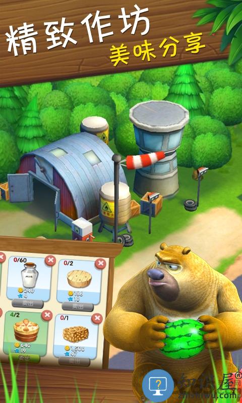 光头强化身机智农场主,熊大经营美食变帮工。最时尚休闲模拟大作带你体验乐趣无限的田园生活!官方正版授权,经典角色再现,果蔬种植,萌宠饲养,建造蛋糕烤炉和风车磨坊制作出舌尖上的美食,随意扩建你的农场并把它装饰成最美丽,最梦幻的农场庄园。小伙伴们还等什么,快来召唤好友完成高级订单,晋升鼎鼎大名的农场主!