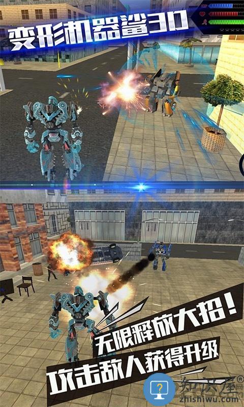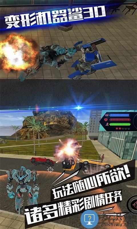变形机器鲨3d游戏十分炫酷逼真的3D全景画面下让你感受不一样的刺激内容,动用自己的武力和智谋歼灭所有的对手,赢得胜利破坏城市!