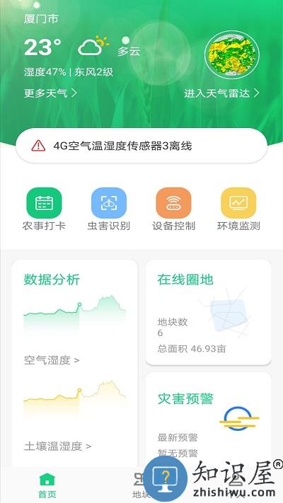 爬山虎智慧种植平台可以实现在线圈地、新闻展示、实时监测空气气温湿度、光照等,可以提升农业的管理效率,更好的扩大产量,提升效益,是强大的农业助手!