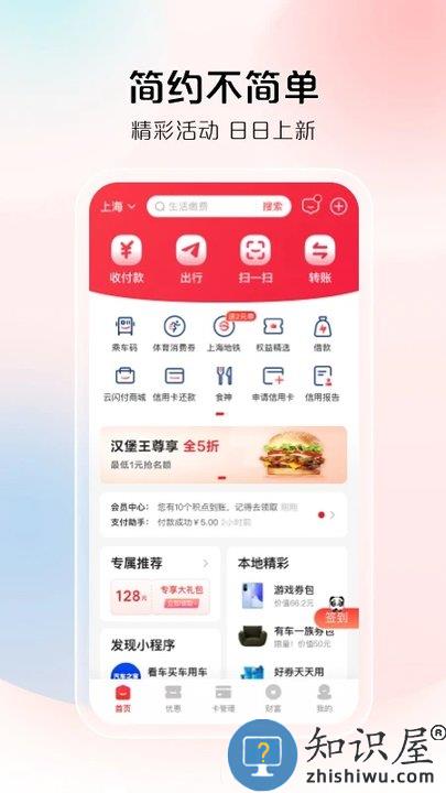 2.发现频道升级为生活频道,根据绑卡主动展示可享优惠,提供推荐、商家、商品、权益等内容