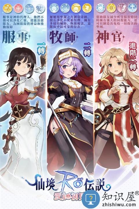 一转「服事」是神的代理人,可以透过圣属性技能【神圣之光】来净化亡灵。在团队方面,除了通过【治疗术】来恢复友方HP值外,更有【天使之赐福】及【加速术】等支持型技能来帮助队友提升属性。