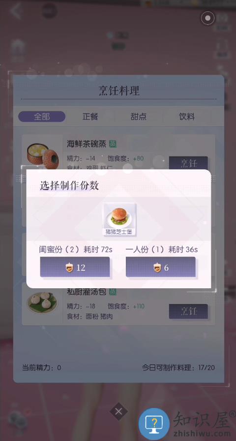 4、确认后,角色会自动到冰箱内选取食材进行制作;
