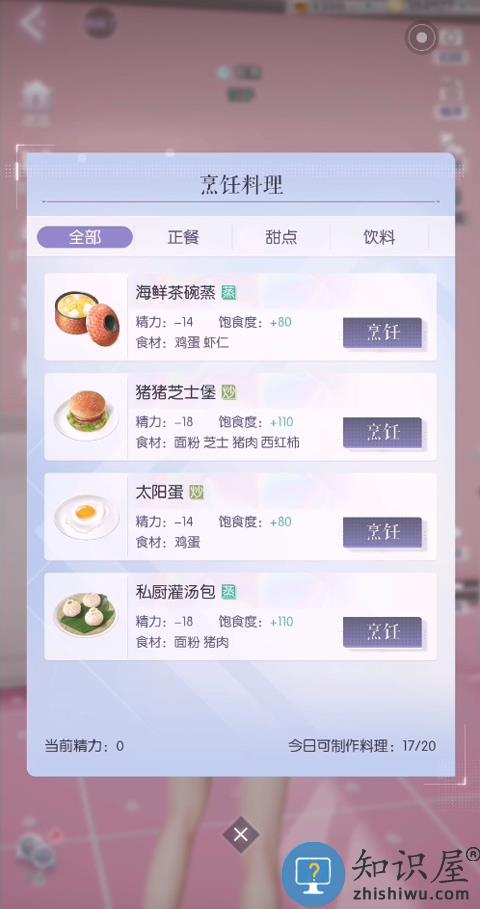 2、然后点击左上角”饿扁了“,选择要烹饪的料理;