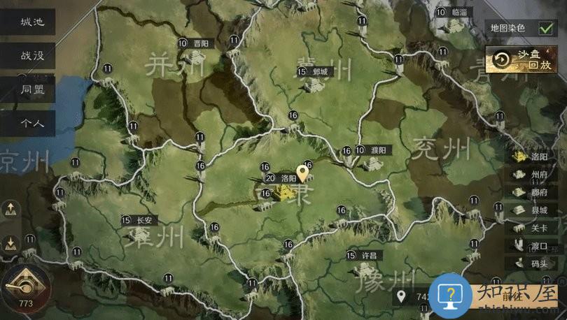 首先需要我们把地图逐步缩小,可以看到我们所在的出生州,每个出生州都会有一个州府,在地图上是10级城标识。