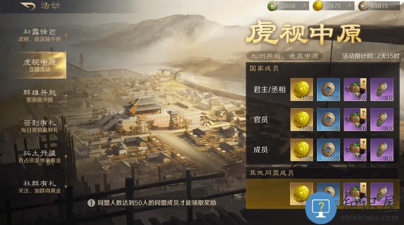 同时我们立国完毕后可以领取虎视中原的奖励,已立国的同盟成员可获得最少1000黄金,而未立国的其他同盟,成员也能获得800黄金保底。
