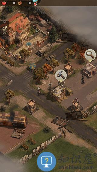 5、来到希望镇,点击地图上的树木可以砍树,点击废弃的建筑可以修复,点击垃圾可以探索