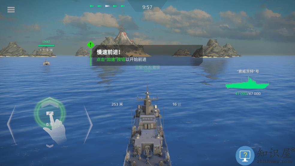 4、按两下前进键即可自动按最大速度前进,将准许移动到敌舰方向,雷达自动缩地敌方