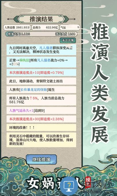 《女娲造人模拟》是一款神话题材的模拟游戏,你将处于天地初开的纪元,唤醒母神开始造人并构建世间秩序,但这不是易事,需要遨游天地探索三界,以便收集天地间合适的材料还需要以合适的配比来造出适合当前时期的各种人类,之后还要引领凡人们正确地修炼证道提升境界,最终维护这方天地的安宁!任重道远,道阻且长.......