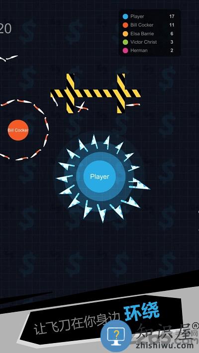 -操作简单,玩家一根手指就能够轻松的体验游戏,玩家游戏里要做的就是不断收集飞刀,打败比你实力弱的对手,成功的活到最后;