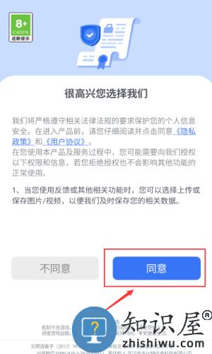 1、点击蓝色同意按钮,确认隐私政策开始游戏。