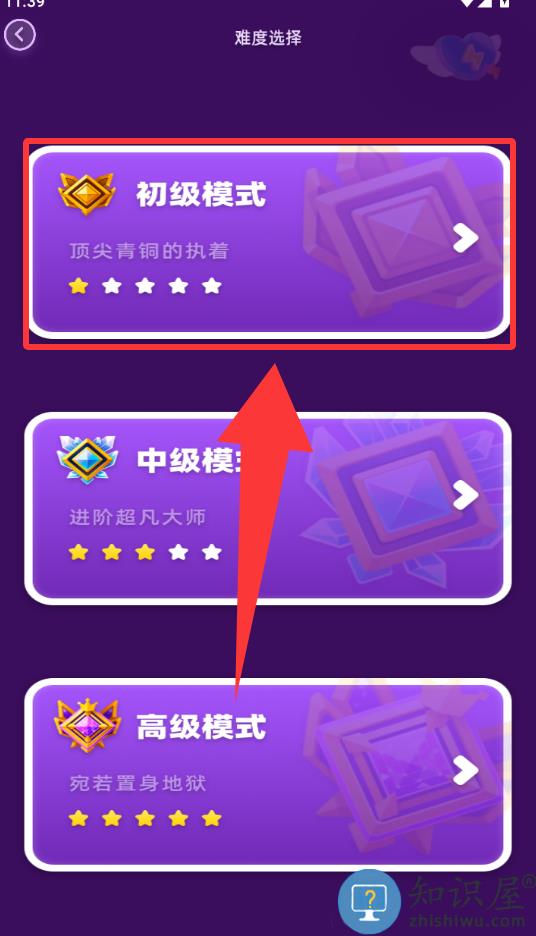 3、进入游戏难度选择新手选初级模式。