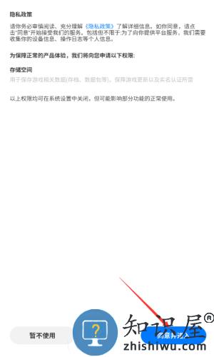 1、点击同意并进入按钮,确认隐私政策开始游戏。