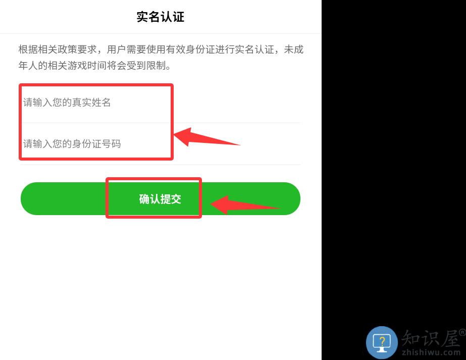 2、输入你的姓名和身份证号码并确认提交。
