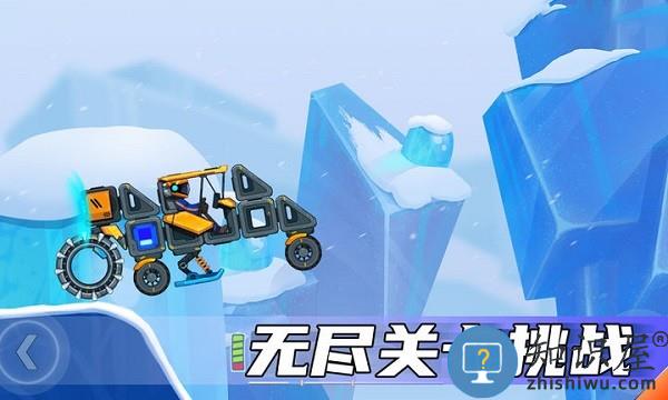 1、障碍:游戏设计了非常独特有趣的地图,玩家将驾驶车辆在满是障碍的场景内进行闯关
