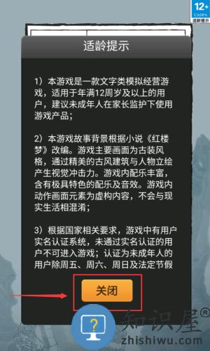 2、点击关闭按钮,通过适龄提示说明界面。