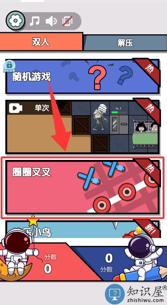3、点击红色框框里圈圈叉叉并进入就可以玩了。
