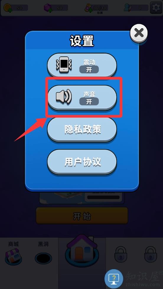 2、进入游戏界面点击设置把声音打开来体验游戏。