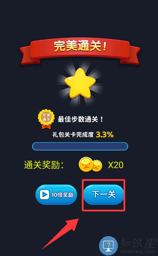 3、恭喜你,通关了,点击红色框框里的下一个继续。