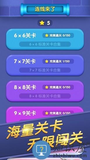 连线来了游戏中有着无尽精彩的关卡等你来挑战,尽情激烈的闯关解谜吧,每个关卡都能得到3星的评价,欢快自由的连线操作, 完美自由的通关吧,将同色的水管不交叉相连,所有水管接通并且完整覆盖游戏区域则游戏过关,分分钟挑战智商极限!
