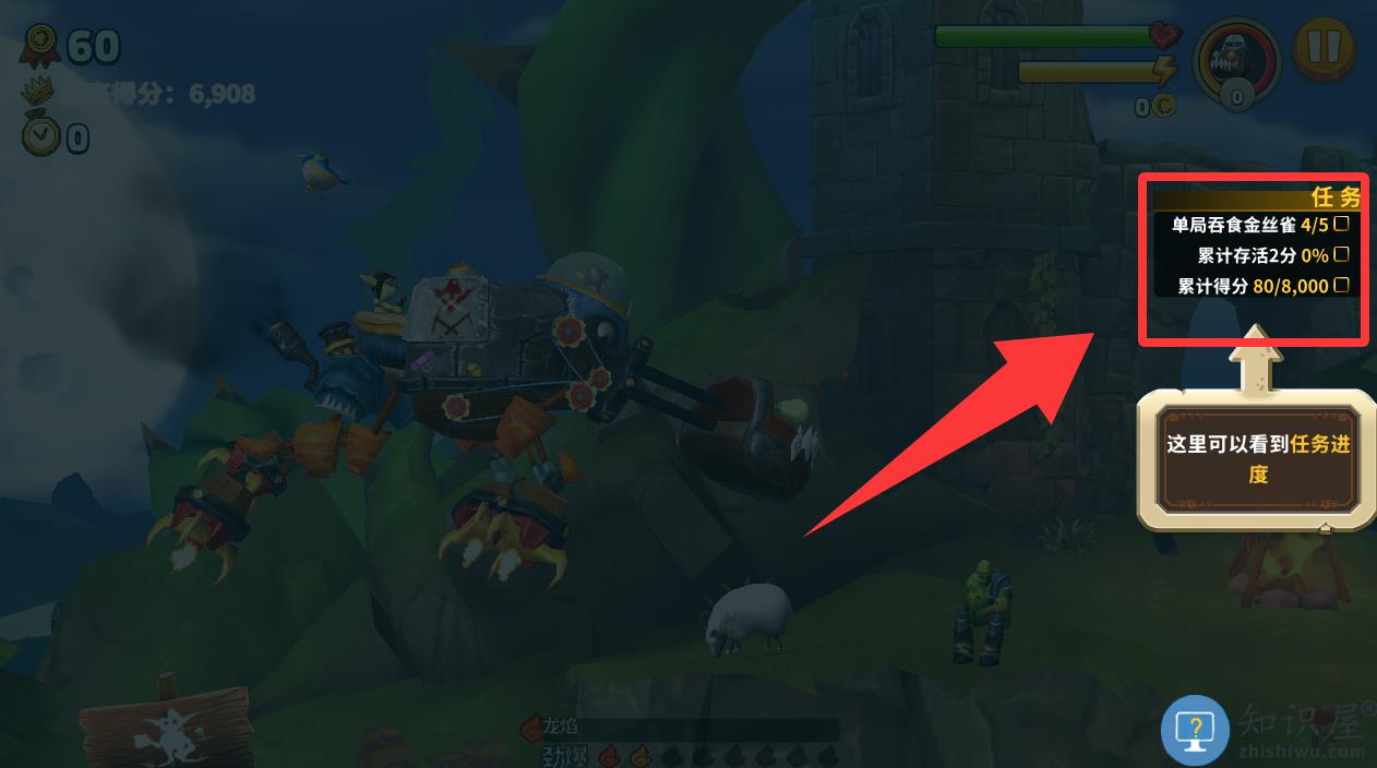 2、注意看红色框框哪里是任务,把它完成了就下一关。
