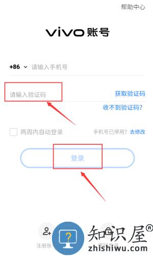 3、将收到的验证码填写进去红框这里,点击登录按钮,完成vivo账号登录。