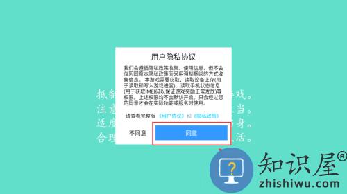 1、点击同意按钮,确认隐私政策开始游戏。