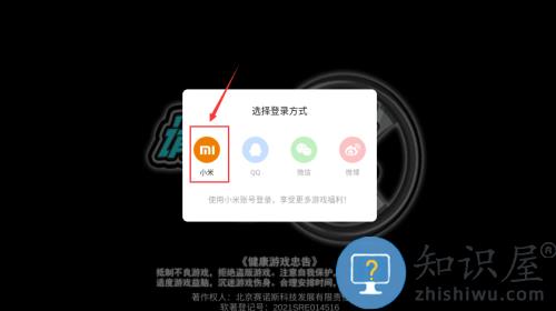 2、选择小米图标,使用小米账号登录游戏。