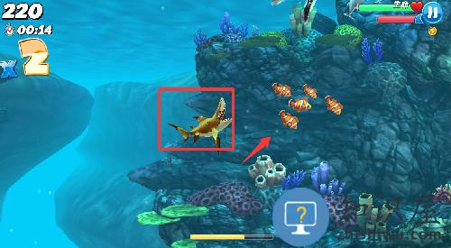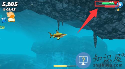 2、注意右上角哪里,不吃鱼就会掉血。