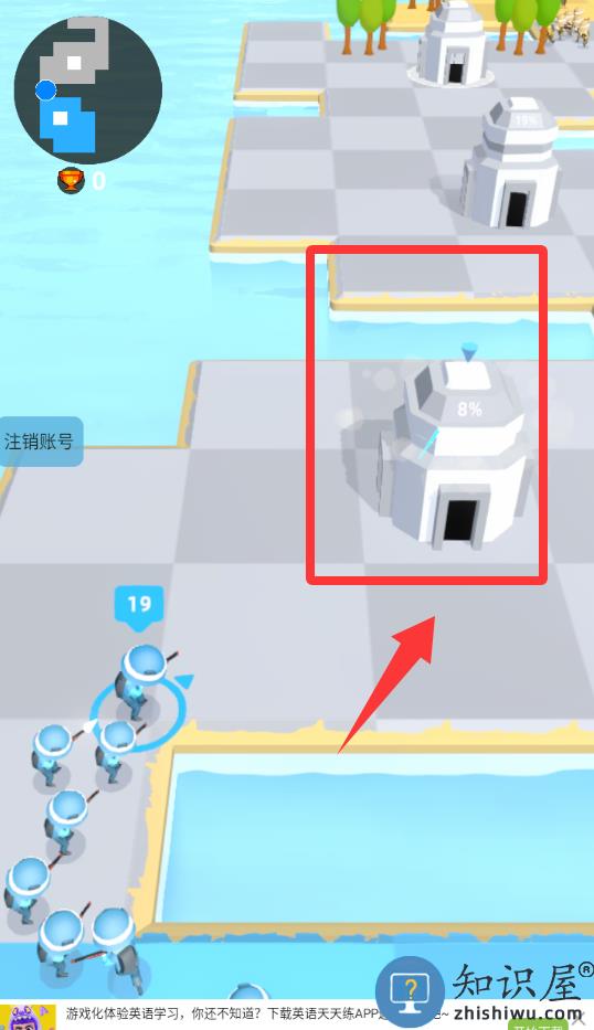 1、进入游戏后,移动角色到塔哪里占为己有。