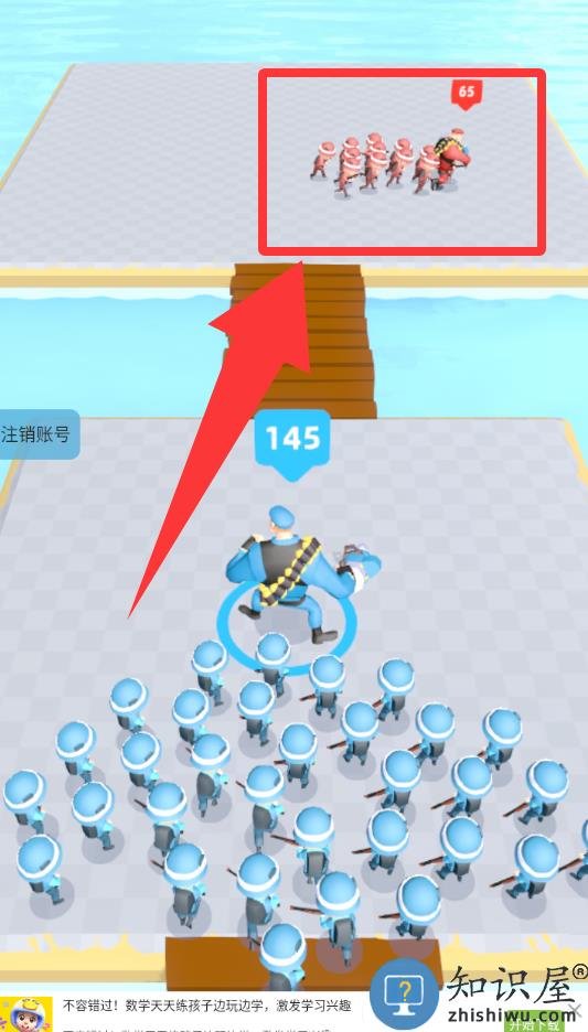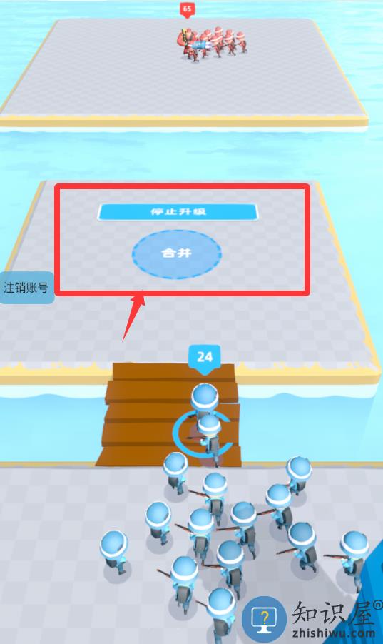 2、移动角色到红色框框哪里合拼增强自己力量。
