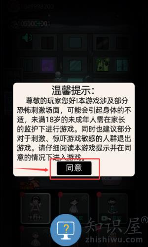 2、点击同意按钮,确认温馨提示并开始游戏。