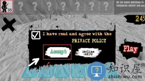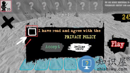 1、点击白色方块,确认同意隐私政策开始游戏。