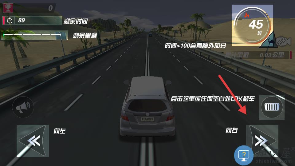 1、通过触摸箭头或重力感应操控车辆左右移动躲避车流。