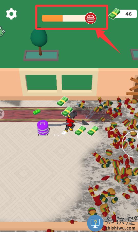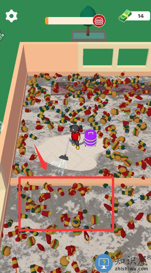 1、进入游戏长按移动角色把地上的垃圾吸干净。
