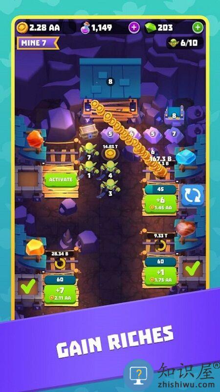 建造矿井和地精大炮来帮助地精重建他们的财富,探索在这个惊人的三维矿工模拟器吨地雷,合并地精给他们加电,打开新的矿井来增加你的黄金收入,开采岩石寻找宝藏和黄金,收集卡片,升级你的矿井和地精。有大量的牌和特殊的能力可以找到。